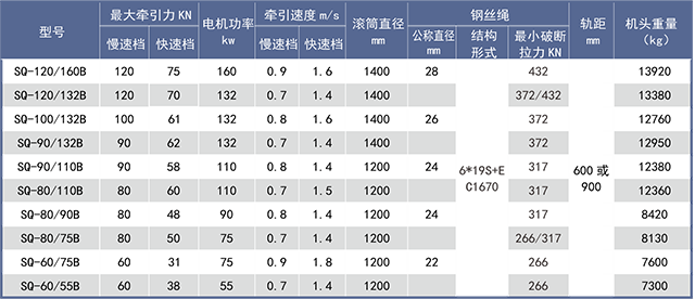 單速無(wú)極繩參數(shù)表