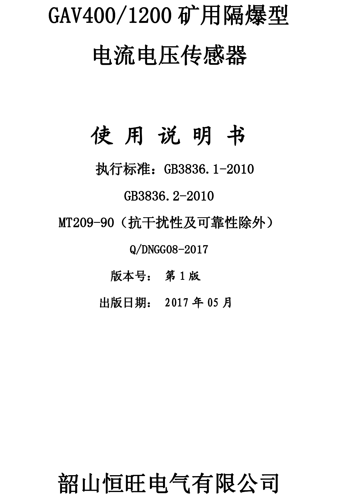 xiao12666@163.comGAV400-1200礦用隔爆型電流電壓傳感器說明書