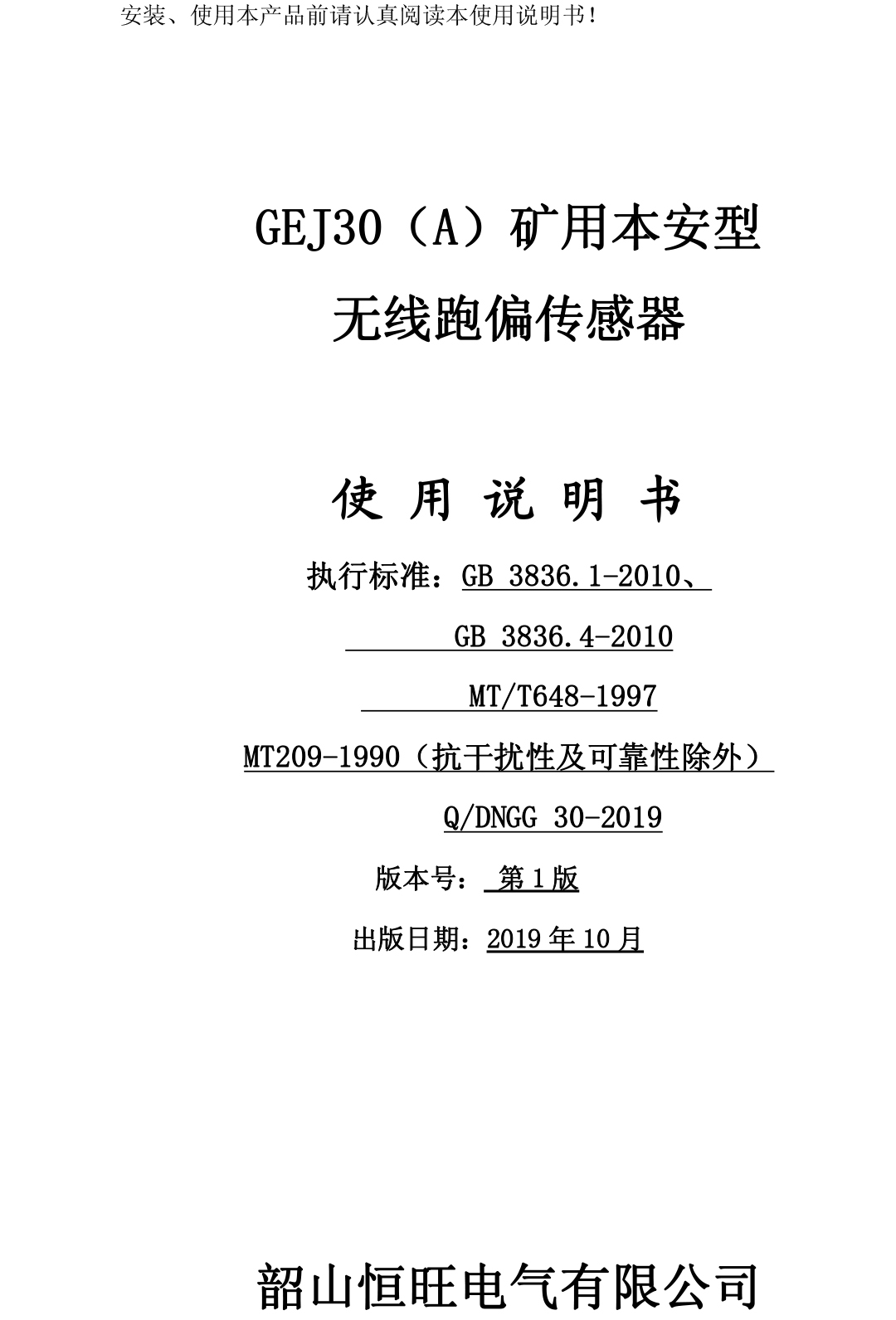 GEJ30(A)礦用本安型無(wú)線跑偏傳感器說(shuō)明書(shū)