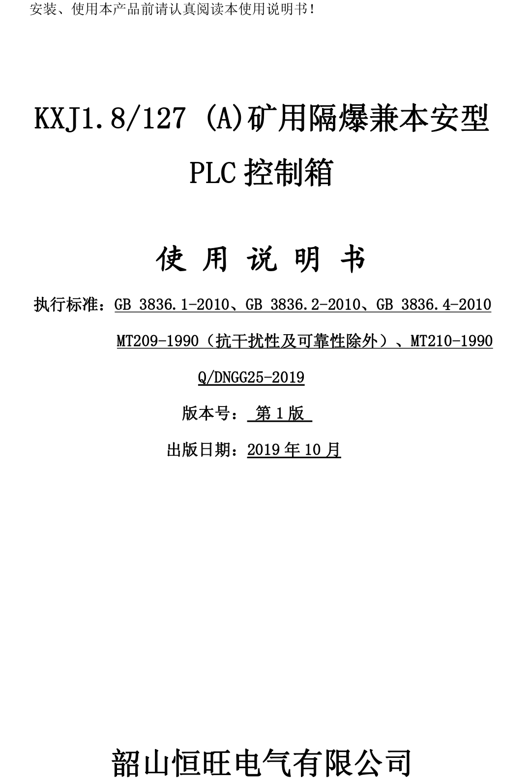 KXJ1.8-127(A)礦用隔爆兼本安型PLC控制箱說(shuō)明書(shū)