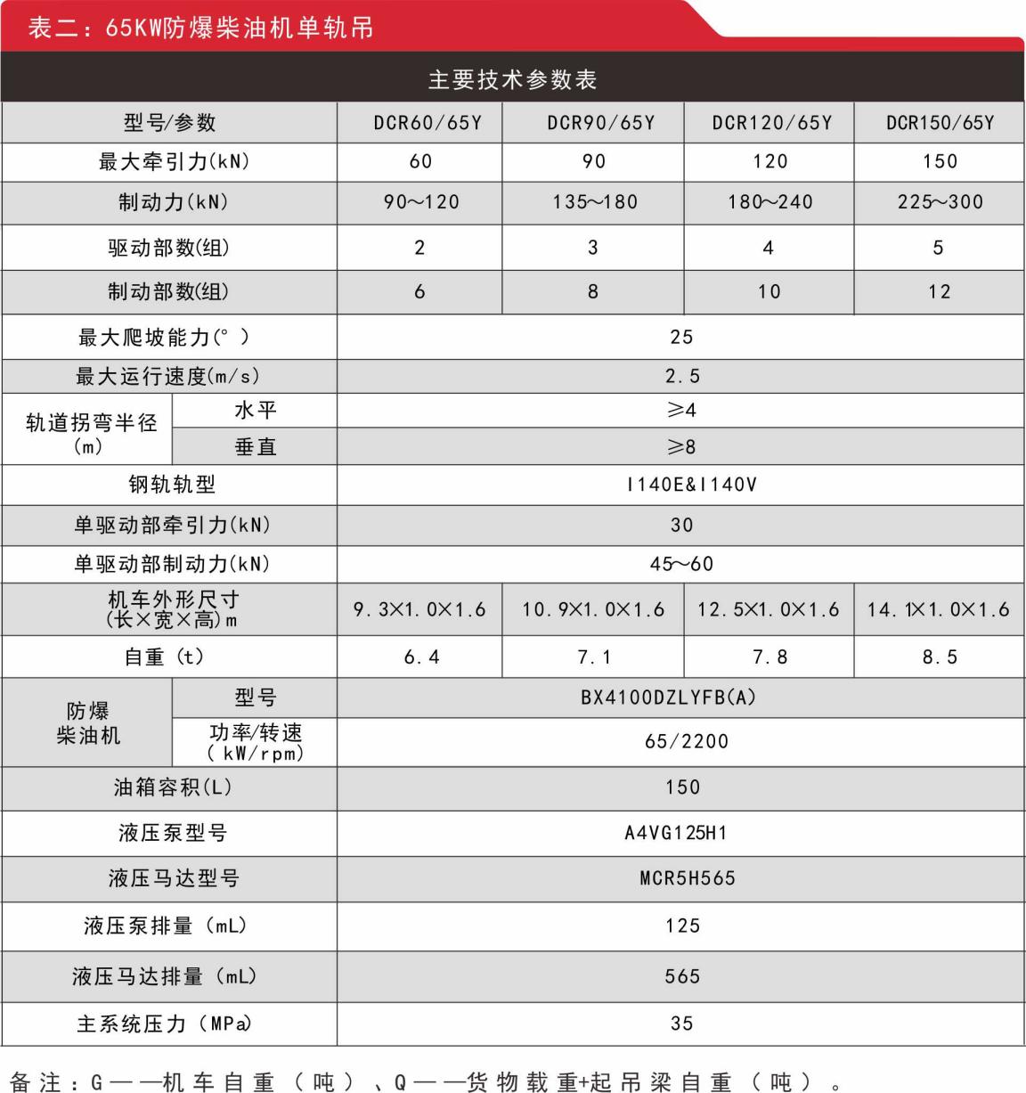 1.防爆柴油機(jī)單軌吊技術(shù)參數(shù)