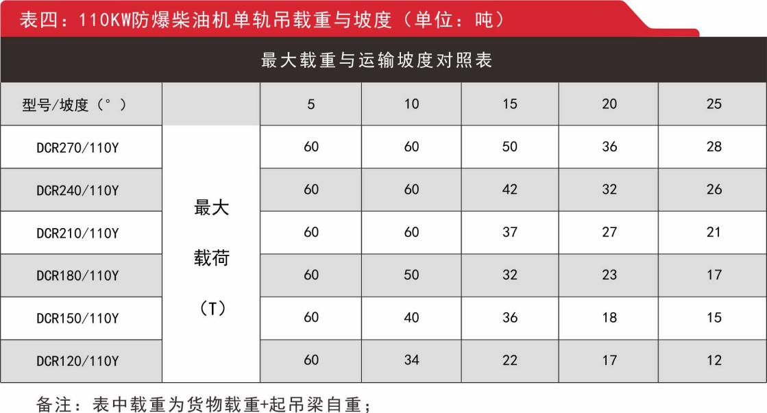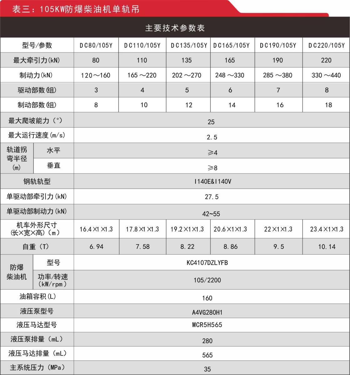 五、防爆柴油機(jī)單軌吊參數(shù)(全馬達(dá)/半馬達(dá)驅(qū)動部)