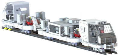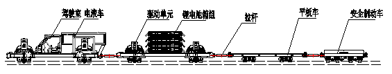 由3箱鋰離子蓄電池電源+兩個(gè)驅(qū)動(dòng)單元組合 ,為齒軌卡軌車的基礎(chǔ)組成部分之一。