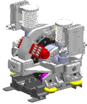 主要 由變頻調(diào)速一體機(jī) 、行星減速機(jī) 、工作制動器(配備減速機(jī)內(nèi)置濕式制動器及作用在驅(qū)動輪 的盤式制動器)、驅(qū)動輪 、編碼器測速裝置 、離心限速裝置 、驅(qū)動支架 、車輪擺架 、卡軌輪 、導(dǎo)向輪等組成 , 單個驅(qū) 動 單 元 的驅(qū) 動 力 :22 kW變頻 調(diào)速 一體機(jī) 的牽 引力 為60kN,45kW變頻調(diào)速一體機(jī)的牽 引力為135kN。
