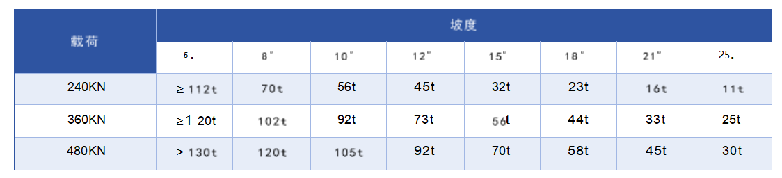 防爆特殊型鉛酸蓄電池齒軌卡軌車(永磁變頻一體機(jī))負(fù)載對照表(單位:t)